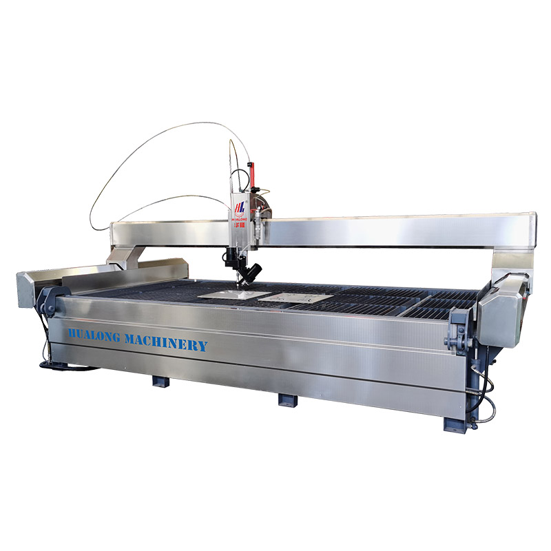 5轴水刀切割机专门用于切割大理石和花岗岩,可补偿10°切割角度。它是一种坡口切割机。由于水刀切割是一种柔性切割方式,因此传统三轴水刀切割机切割后的产品截面会有一定的倾斜度。为保证垂直切割断面的精度,必须降低切割速度。而我们的5轴水刀切割机可以通过补偿切割角度来保证垂直切割截面的精度,而不会降低切割速度。这样就可以用来切割拼花石材,拼花地板不需要再打磨,省时省力。
